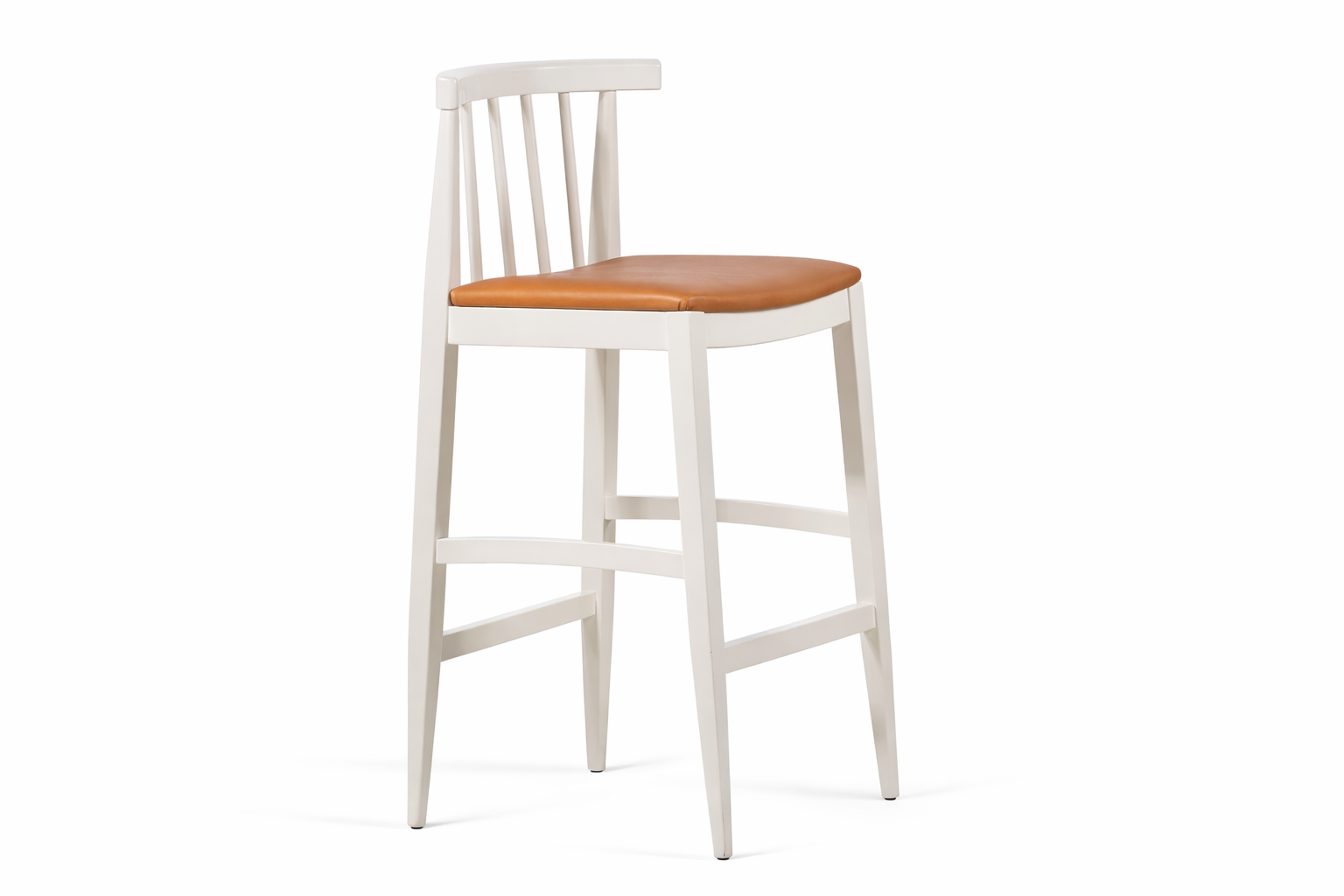 A banqueta Country conta com sua estrutura e encosto em madeira maciça, e assento estofado.
