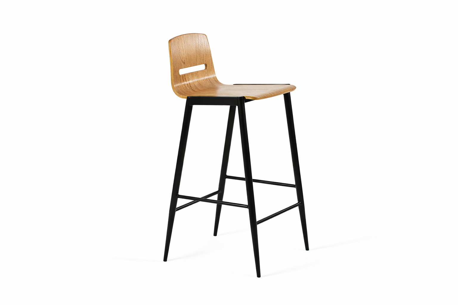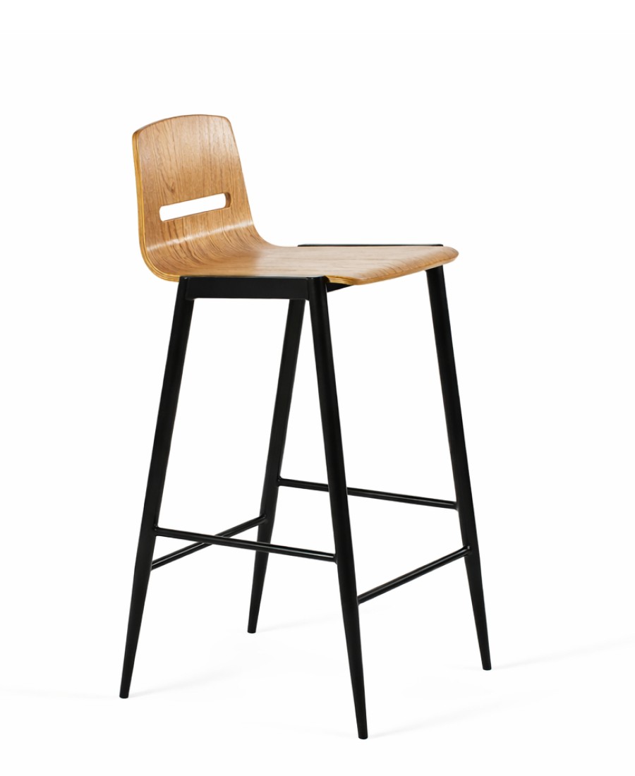 A banqueta Kobe é composta por sua estrutura em metal, e seu encosto e assento em acabamento laminado.