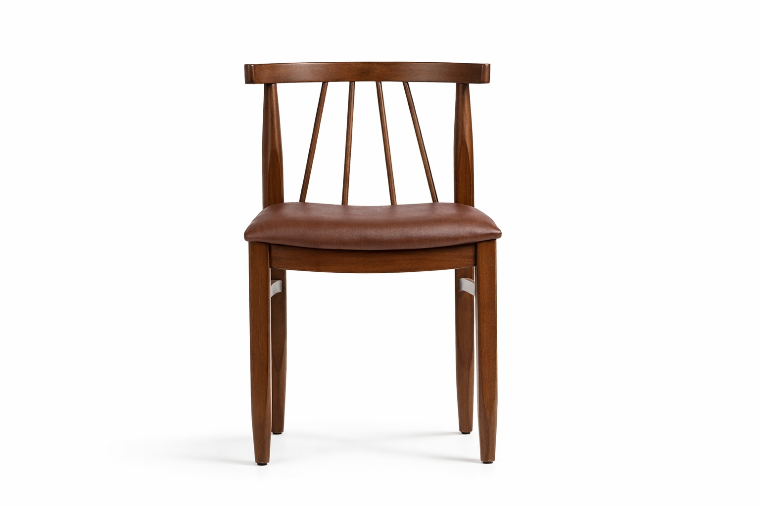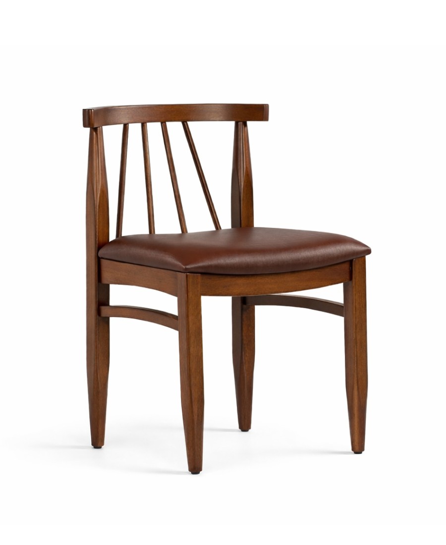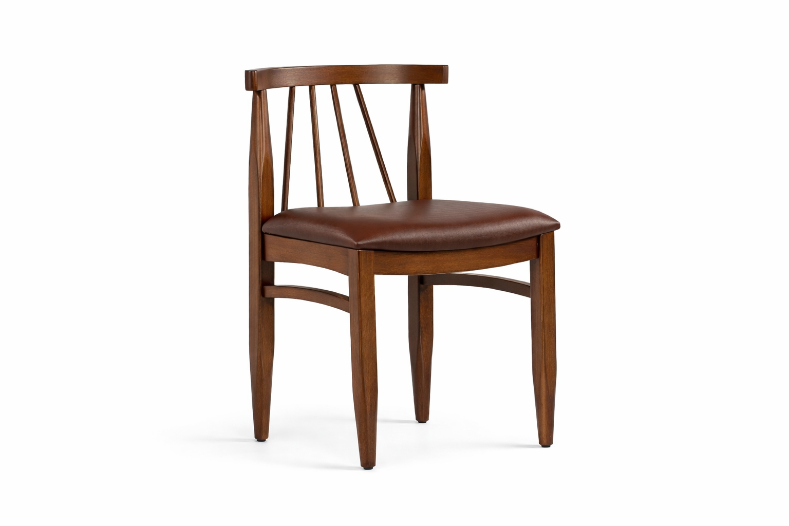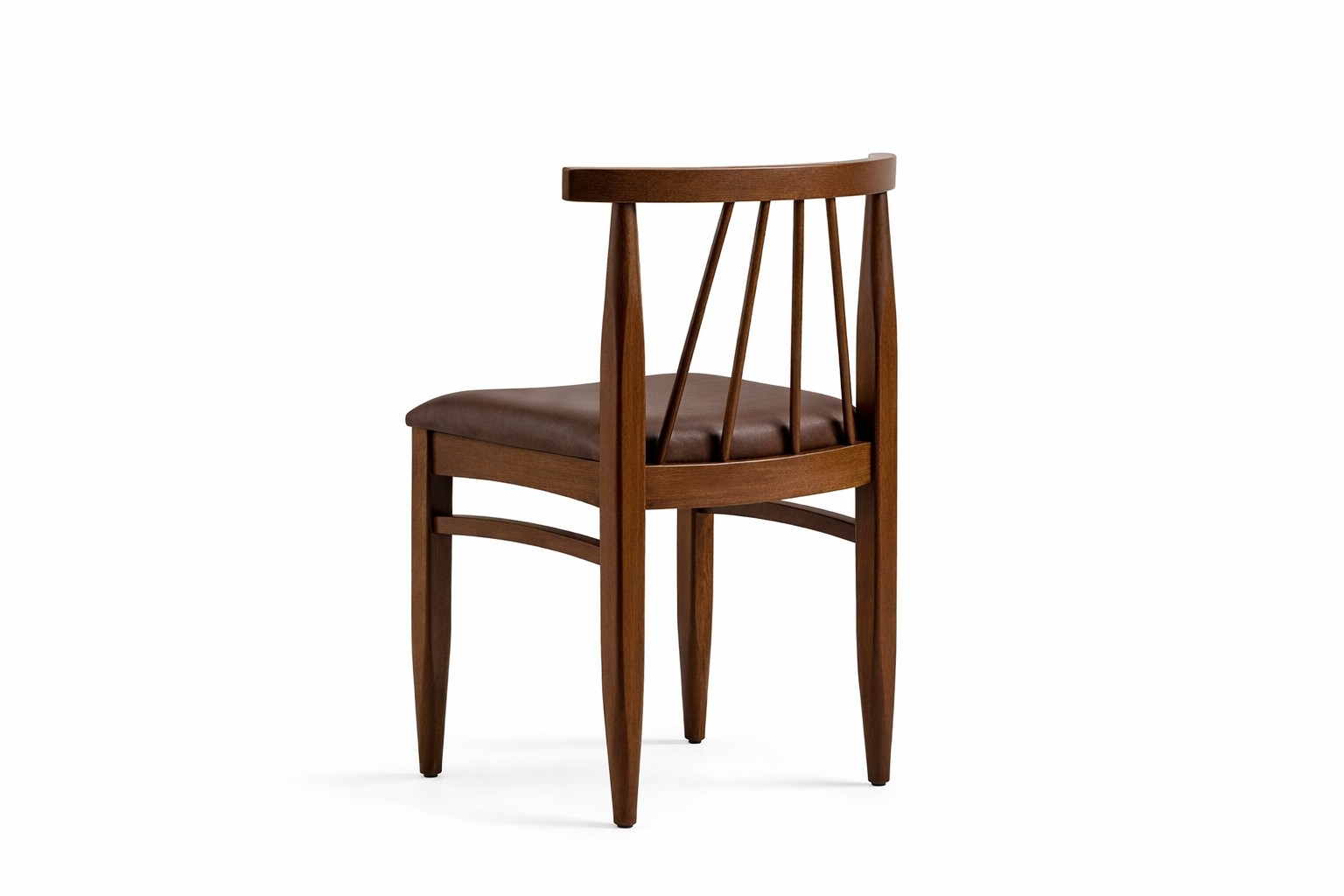 A cadeira Country conta com sua estrutura e encosto em madeira maciça, e assento estofado.