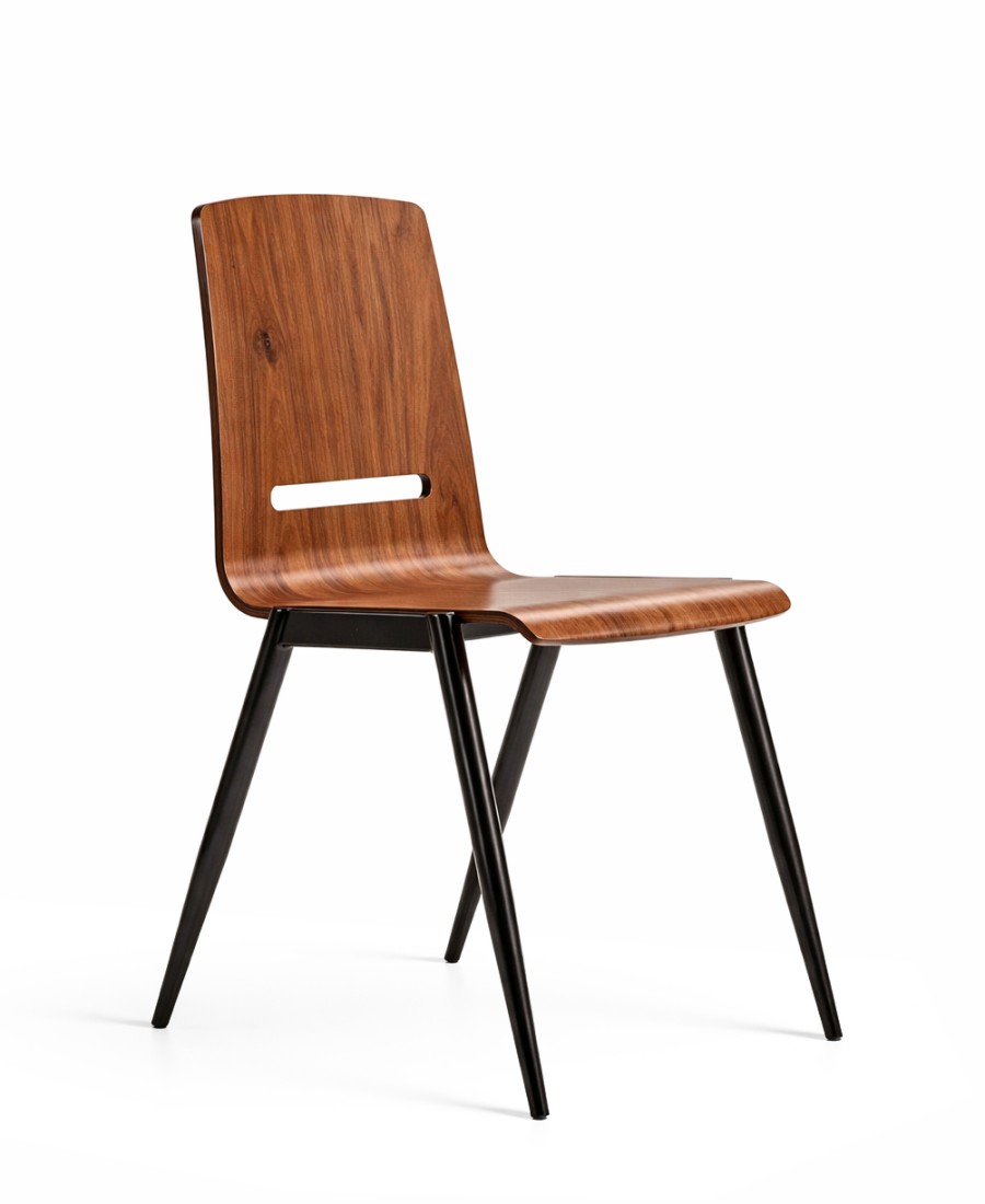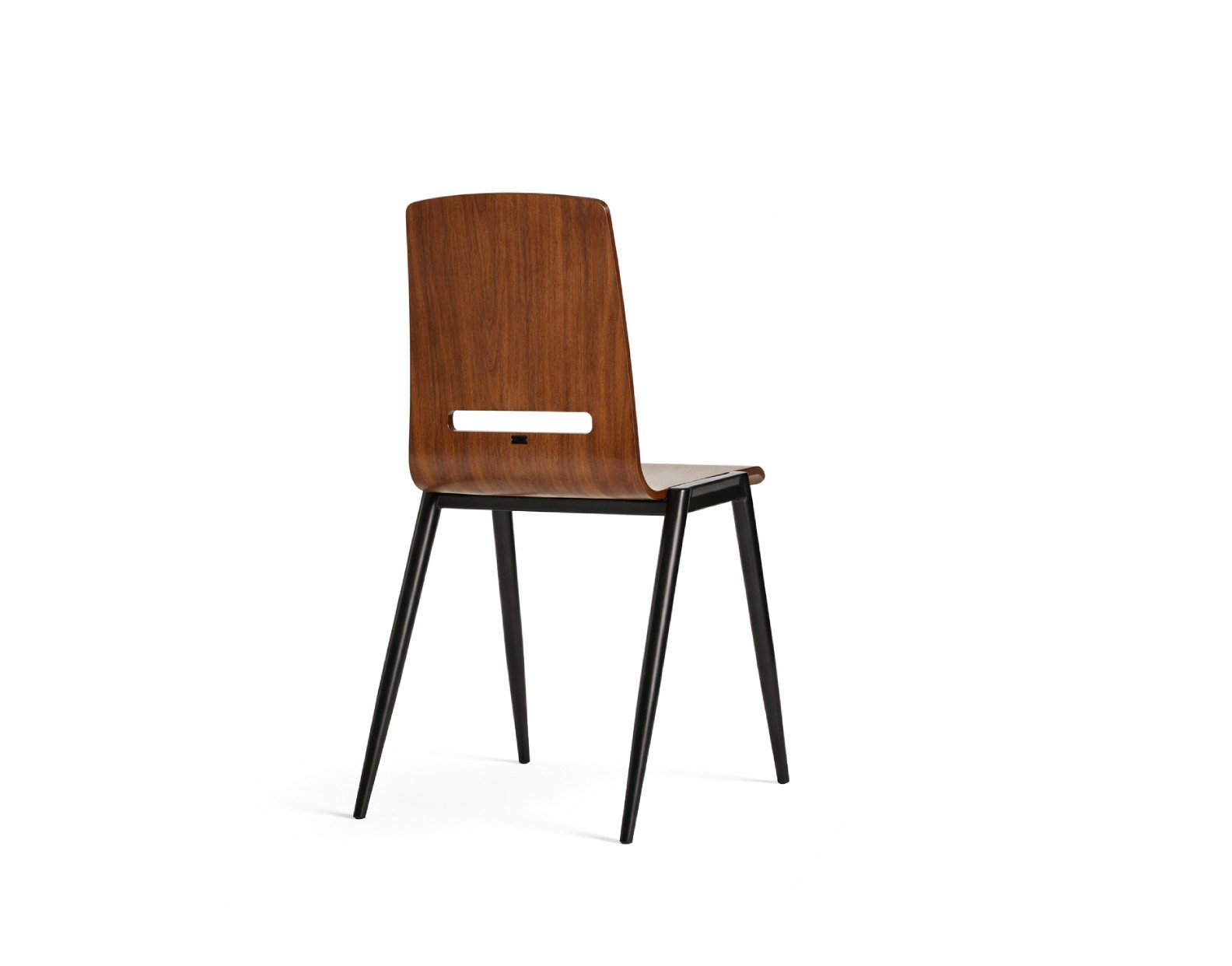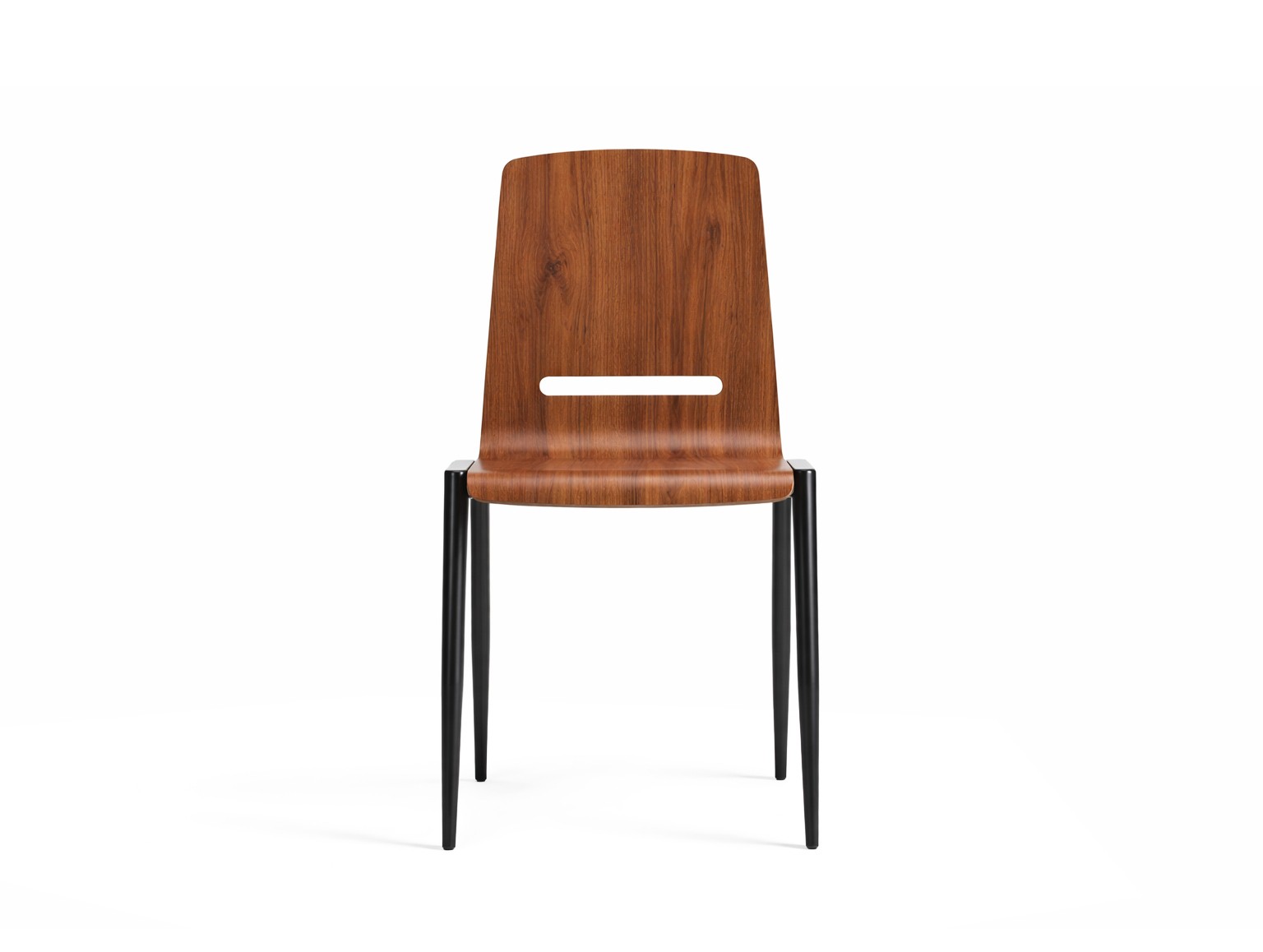 A cadeira Kobe conta com sua estrutura em metal, e seu assento e encosto em acabamento laminado.