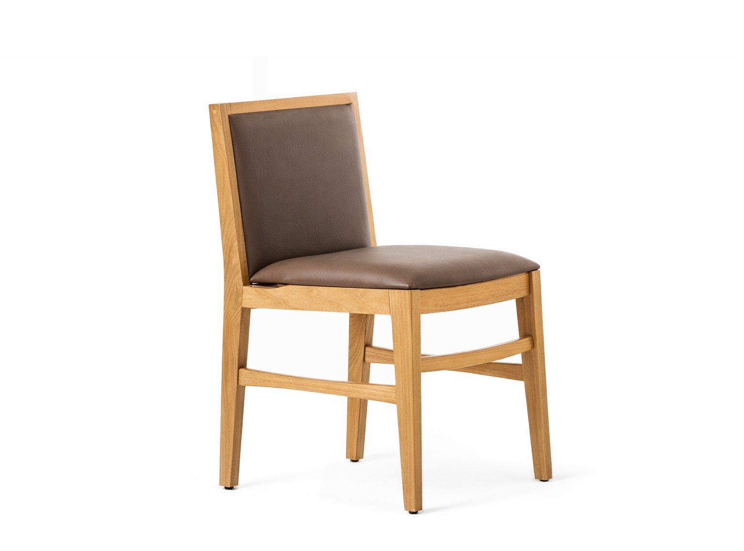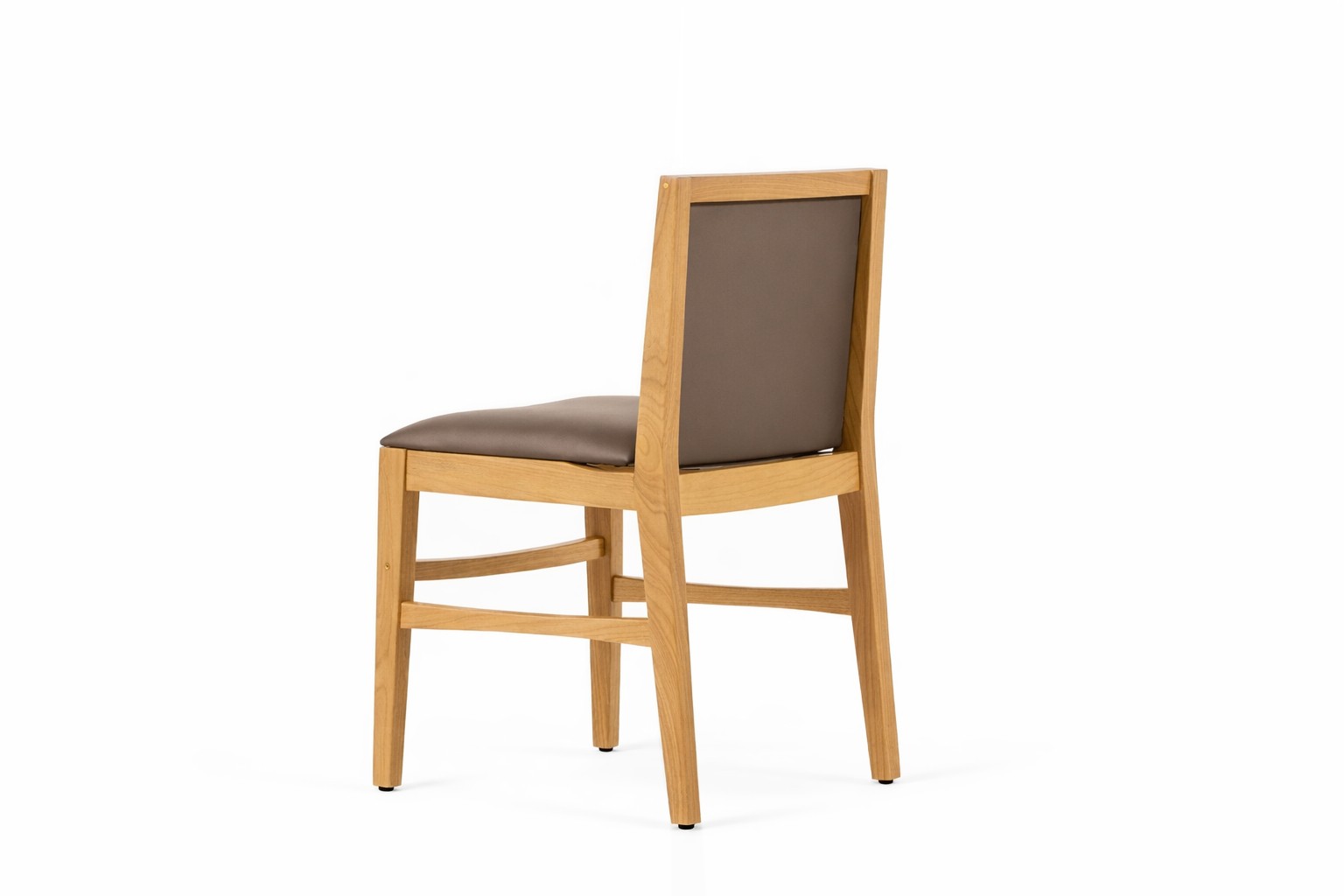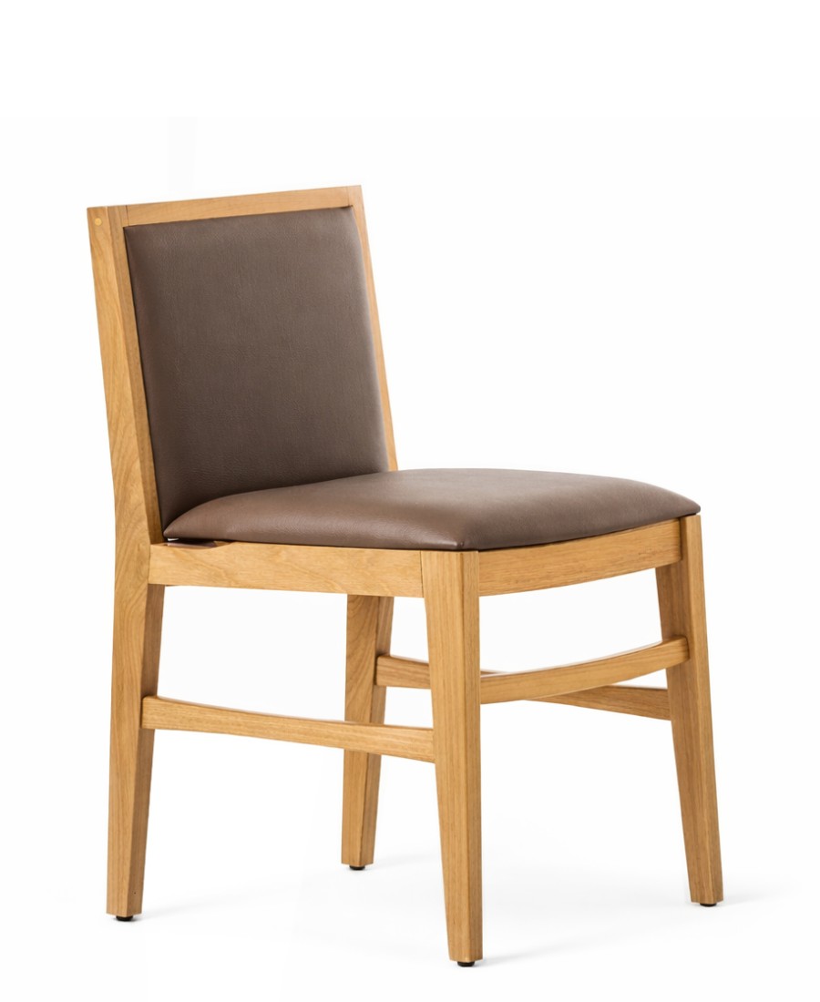A cadeira Mona conta com sua estrutura em madeira maciça, com encosto e assento estofado.