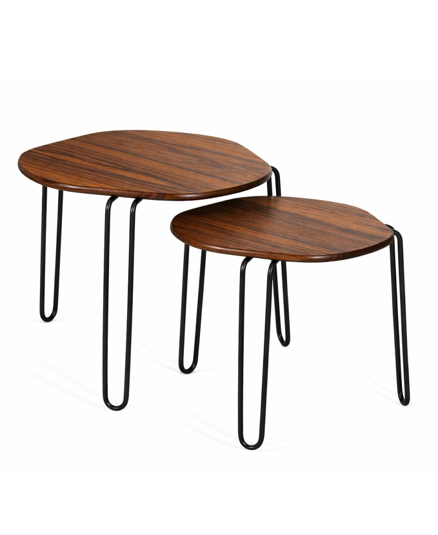 As mesas de centro Double destacam-se por suas formas orgânicas. São ideais para espaços residenciais, comerciais ou gastronômicos.